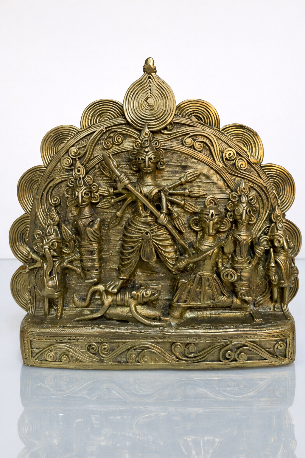 Brass Durga With Family Stabak – Handcrafted Dhokra Art | Mahishasura Mardini | Traditional Indian Tribal Brass DécorBrass Durga With Family Stabak – Handcrafted Dhokra Art | Mahishasura Mardini | Traditional Indian Tribal Brass Décor
